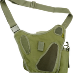 Y-compression strap made from 1" webbing. 2 rows, 5 channels of PALS webbing. 3 channels of 2" webbing loops. Bungee cord retention. Breathable padding for comfort. 1 mesh side pouch...