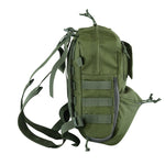 The sides of the pack feature a bottom to top zipper access to the main compartment of the pack. This allows the user to configure the main compartment for a multitude of uses in the field where accessing the pack from the top or storage of an item that is longer than the pack body is needed.