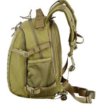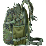 The NFG Elite 'AFB'ADVANCED FIELD BACKPACK , is a medium pack with a 2700 cu. In. / 45L capacity. The weight is 3.5 pounds, which is great. The pack is designed very well in terms of the compartment and pocket design, both external and internal. There are two main compartments and a third smaller (outermost) external compartment/pocket, all featuring “heavy-duty, glove-friendly” YKK zippers, as well as a couple of side pockets for water bottles. Then, there are a bunch of handy internal pockets. Either of the largest compartments can easily fit a holstered pistol, spare mags. The tactical hydration bladder would be placed in the back of the pack, and the drinking tube run out the tube hole in the top. You can also put your notebook (15'') in the back side compartment . There’s lots of laser-cut MOLLE/PALS webbing, side retention straps with buckles, D-ring attachment points, a detachable hip belt, a small Velcro panel for attaching a tactical patch, and a host of other features. Drag handle is particularly well executed. Innovative ventilation system used in backpacks, which provides increased comfort for their users. Made of contoured foam profiles with multiple air channels that are combined with airy mesh, which enhances air circulation preventing heat build-up and sweating, while the stiff foam ensures comfort and stability.