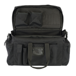 An ideal patrol bag for your front seat or trunk, the NFG Elite Patrol Bag keeps all your essential gear and accessories within easy reach. Perfect for Highway Patrol, NFGEriffs, or lone patrol officers, the Patrol Ready Bag features an adjustable main compartment divider that allows you to adapt your storage space instantly, a removable heavy duty shoulder strap for easy carry in any environment, and durable grab-and-go nylon handles for quick disembarkation. Multiple organizer pockets are sized for common accessories, including water bottles, magazines, pens, papers, and electronics. A transparent ID panel allows quick ID, and tough 600D PU*2 DWR coated cordura with closed cell foam and kydex padding all over the pack construction keeps your gear safe and secure in any climate. SPECIFICATIONS All-weather 600D Polyester 18.5' X 8' X 12' main compartment YKK® zippers Transparent ID/business card window Loop and hook side panel FEATURES Versatile and customizable police patrol bag Two Water Bottle Pockets Two Side Pockets Two End Pockets Two zippered pockets on lid Integrated organizer Durable nylon carrying handles with secure closure Removable shoulder strap with heavy duty clips