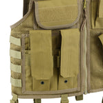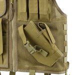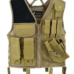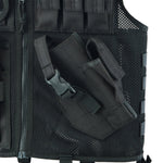 The Tactical Cross Draw Vest provides tactical professionals with both optimal protection and enhanced storage capabilities. Featuring four magazine pouches and a horizontal pouch for accessories, you’ll have plenty of room to store whatever you need for your mission. The heavy-duty mesh design and padded non-slip shoulder make for a vest that is both breathable and ambidextrous. An interior pocket serves as a hydration reservoir and rapid side-release buckles with durable YKK zippers allow you to put on and remove the vest in a flash. The vest features a sturdy drag handle and cut away shoulder system for rapid removal in an emergency. Ideal for pilots, maritime or vehicle operations among many others.