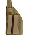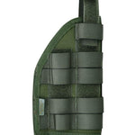 The NFG Elite MOLLE pistol holster has adjustable nylon straps with velcro for pistol retention. The compact design will let you use it on or in any equipment, and the MOLLE straps on the outside of the holster will allow for the attachment of accessories. Right- or left-hand use.