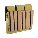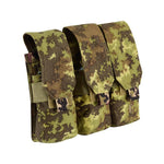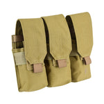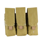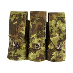The NFG Elite MOLLE Triple Mag Pouch is specially designed for one purpose “high speed magazine access with absolute security”, fits various types of 30-round AK, M4 / SA80 / STANAG and Emags. Has a conventional Velcro closure, open-top friction fit, or open top bungee closure (self added). Also fits flash bang (diversion device), or other equipment of similar size. Middle-placed elastic retention: no squeezing at the opening of the pouch, fast extract / reload of mags.