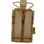 The NFG Elite ‘ARP’ ADJUSTABLE RADIO POUCH, a nylon fastex buckle and adjustable cord provide retention for the radio in the pouch. The adjustment system allows the pouch to be adapted for most existing style hand-held comms systems in use by military and police. The pouch can be attached to equipment using a universal MOLLE system and there is an eyelet at the bottom of the pouch to allow for water drain.