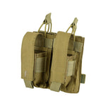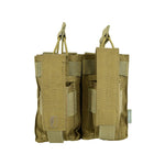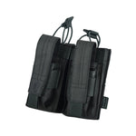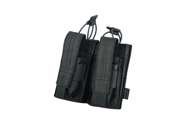 The NFG Strategic double M4/9mm open-top Mag Pouch combines and secures two M4/M16 open top magazine with bungee straps and two 9mm magazine with adjustable velcro flaps. It’s engineered utilizing our 600 Denier PU*2 DWR coated Cordura which offers significant weight reduction. Since the entire pouch is adjustable, from the elastic pull-tab cords to the pistol mag flaps. This pouch is tough and tactical, with riveted holes at the bottom to allow for drainage. Mag placement is easy and retrieval is quick, as the tops of the pouch open rapidly for situations in which speed is paramount. Magazines sit securely in place, making this a reliable piece of duty gear.