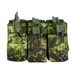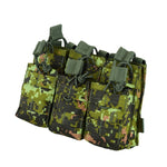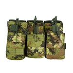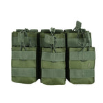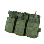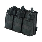 The NFG Strategic Triple Stacker open-top Mag Pouch is a convenient modular attachment that accommodates Six M4 or M16 magazines in a stacked configuration. This mag pouch attaches easily to battle belts, tactical vests and other webbing platforms thanks to six MOLLE straps on the rear. Featuring a rugged 600D PU*2 DWR coated construction designed to handle constant abuse, this pouch is ultra-durable. It’s also constructed with bungee pull-tab cords that ensure the magazines sit securely in place, making this pouch a safe option for your extra ammunition. These bungee cords also allow the tops of the pouch to open rapidly for easy magazine retrieval and replacement.