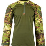 The NFG Strategic Hybrid Tactical Shirt is designed for hot climates, made from two types of fabrics to provide comfort and extra ventilation when using the body armor vest. The central part of the under armor shirt is made of mid weight -wicking PC (80% cotton/20% polyester) torso fabric with features enhanced breathability and elasticity. It is highly wicking material. The sleeves and collar are made from 60% cotton and 40% polyester Rip-stop fabric to make the shirt more strength in the military field use.