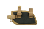 Survival Shotgun/Rifle Stock Cheek Ammo Pouch Pad. If features a utility pouch with YKK branded zippers on the right-hand side and a removable NFGEll holder attached by Velcro, Perfect for Hunting & Shooting, Law Enforcement, Military Ops.
