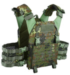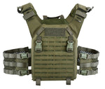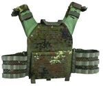 The NFG Elite ‘FPC’ Falcon Plate Carrier is the latest evolution of plate carriers from NFG Elite. Designed to be a lightweight and versatile low-profile armour carrier, offering enhanced mobility without compromising protection. The FPC has been developed to hold medium and large SAPI and ESAPI stand alone plates and the most common 10” x 12“ I.C.W. plates available. Plate pockets have been backed with 3D mesh for added ballistic performance, comfort and dispersal of body heat. The Falcon Plate Carrier comes standard with ladder style cummerbunds that attach to the FPCs front via 2 YKK Clips. This allows rapid access when getting in and out of. The FPCs shoulders can be worn in 3 different configurations as a slick low profile with the addition of velcro padded shoulders and wrap around sleeve for hydration and comms channeling. The FPC comes as standard with a removable MOLLE front flap held in place by 2 vertical SQM clips and strong velcro which allows the panel to be removed and replaced with a wide variety of preconfigured weapon-specific pouch panels and NFG Elite new Falcon & Apache Chest Rigs.