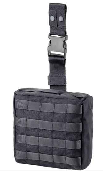 DROP LEG DUMP POUCH is used to dump empty magazines into or to store any other accessories, can be used on the leg with the extender and two nylon straps with silicone bands and quick release YKK fastex buckles or on the belt, the two nylon straps in the semi closed position keep the magazines or accessories from falling out.