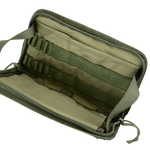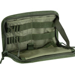 The NFG Elite COMMANDER PANEL / MAP POUCH. Command Panel allows the use of navigational items , maps, and other admin on a protected, flat clean, surface. Also features an internal transparent map sleeve. The Panel has 6 MOLLE columns wide across the front and allows enough space for the attachment of extra pouches. On the inside there are 2 pockets and elastic loops to hold pens, compass, knife, chem lights, protractor, notebook etc. SIZE : H:16cm, W:26cm, D:35cm
