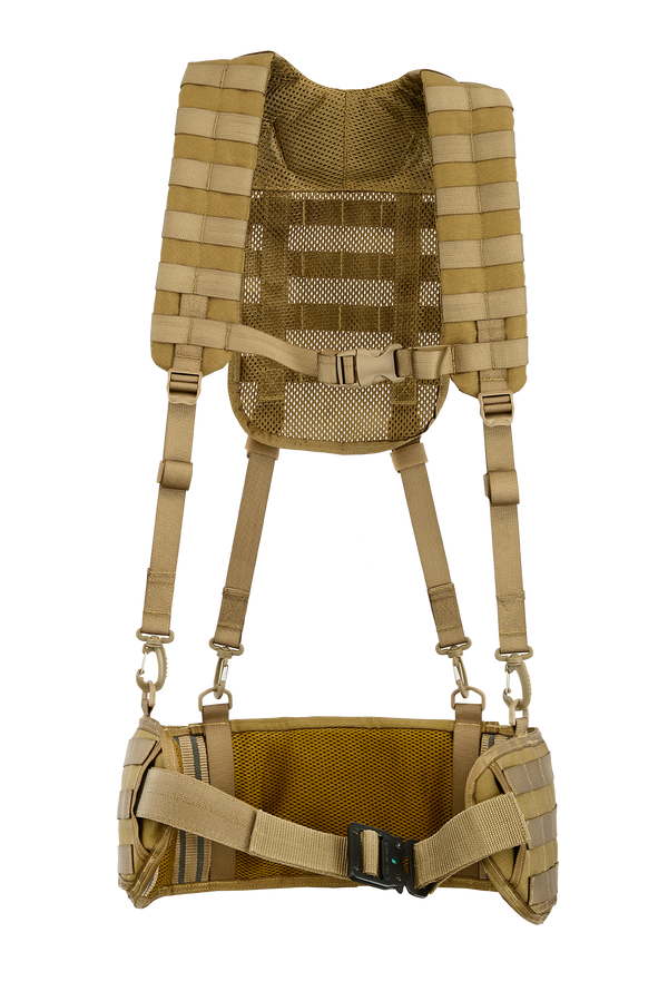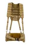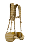 The NFG Elite 'FWS' (FIELD WEBBING SYSTEM) designed to displace load carriage and to carry extra pouches but still allows for comfort and load carriage strength. Harness has 4 x down straps that can either loop back up through your existing belt loop D rings. The rear of Jungle harness has a main Molle webbing allowance for hydration water bladder pouch. Internal & fully adjustable secure clip up belt included. Sizes: Small (Small - Medium). The Belt is 82cm long end to end. Regular (Medium - Large waist). The Belt is 90cm long end to end. Long (Large - Xlarge waist). The Belt is 106cm long end to end.
