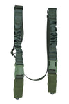 The NFG Elite 2 To 1 Point Bungee Sling , converts from two point to single point sling. This Sling has dual high strength bungee construction, features Snap hook adapter covered with elastic cover and side-release buckle to release adapter and sling.
