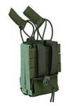 The Rapid Access Double Rifle Magazine Pouch is The Next Evolution in NFG’s extremely popular Rapid Access series of Mag Pouches. Rapid Access will handle any type of Rifle Magazines thrown at it. Able to carry 2 Magazines in a single Pouch eliminates the need for double stacking The pouch is one piece of 4 layer laminated Cordura with 2 Plastic Brackets which are separated by a Nylon molded plastic NFGEet. The Plastic NFGEet has holes on it which adds a bungee loop at the top for over the top bungee retention. Made of Cordura, Polymer, and shock-cord. It is silent when struck against by a hard object and while extracting the mag.