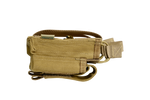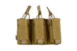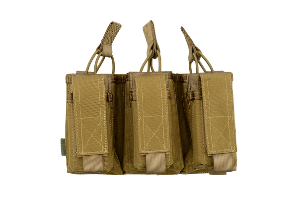 The NFG Elite TRIPLE MOLLE Open 5.56mm + 9mm is now available with the addition of 9mm pistol mag pouches attached to the front. This “Kangaroo” pouch holds 5.56mm x 45mm M4 style metal and polymer mags. (NOT G36 mags). The main compartment is accessed via bungee retention with the front pistol mag pouch being accessed via a Velcro flap, this has internal adjustments for height to accommodate various sized mags.