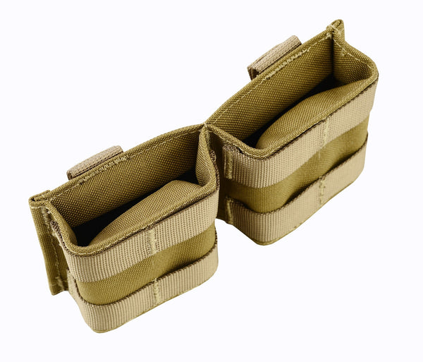 Constructed of a double layered 1000D Cordura body and backing with kydex inserts , the double M4/M16 GRIPTAC pouch is made to survive abrasion while the minimalist design keeps the weight to a minimum. Made to fit most two M4/M16 MAG POUCHES. The M4/M16 Grip Tac pouch makes a great addition for Molle padded belts, and attaches via 2 Short Malice Clips. These pouches retain your mags with authority yet release them lightning fast when grabbed. Awesome pouch, minimizes weight and occupied area. Mags draw flawlessly and retention is just perfect. With the updated MALICE attachment, can easily mount to a belt or molle loops.