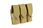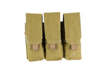 The NFG Elite MOLLE Triple Mag Pouch is specially designed for one purpose “high speed magazine access with absolute security”, fits various types of 30-round AK, M4 / SA80 / STANAG and Emags. Has a conventional Velcro closure, open-top friction fit, or open top bungee closure (self added). Also fits flash bang (diversion device), or other equipment of similar size. Middle-placed elastic retention: no squeezing at the opening of the pouch, fast extract / reload of mags.