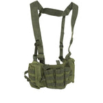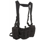 The NFG Strategic Compact Chest Rig (CCR) is a combat chest rig with minimal bulk, weight, and ‘footprint’. It is designed to carry three M4 style magazines and has two small zippered utility pouches on either side, perfect for Low Profile Medical Insert, which was designed around that pocket. They’re also very useful for storing a pair of assault gloves, eye wear, or an extra M4 magazine or two. There is a small but useful ‘hidden’ map pocket in the panel body behind the pouches. This harness secures to the body of the wearer by means of a low-profile chest rig and detachable waist strap. The chest rig is designed to be ‘slick’, so that there are no buckles or straps to snag the butt of your rifle as it is brought into firing position.