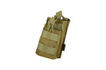 The NFG Strategic Single Stacker open-top Mag Pouch is a convenient modular attachment that accommodates two M4 or M16 magazines in a stacked configuration. This mag pouch attaches easily to battle belts, tactical vests and other webbing platforms thanks to two MOLLE straps on the rear. Featuring a rugged 600D PU*2 DWR coated construction designed to handle constant abuse, this pouch is ultra-durable. It’s also constructed with bungee pull-tab cords that ensure the magazines sit securely in place, making this pouch a safe option for your extra ammunition. These bungee cords also allow the tops of the pouch to open rapidly for easy magazine retrieval and replacement.