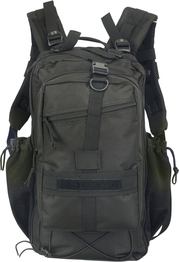 • 1 mesh side pouch on each side to accommodate 32oz / 1L water bottle with cord retainer.