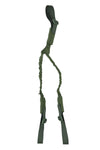 Fully adjustable at both top points of the V shape, this allows the operator to have complete control of both the angle at which the weapon sits but also to adjust to accommodate various sizes. Offers approx. 12cm of flex making it nonrestrictive to the operator but with enough retention to offer security of the rifle while not in use. 30mm wide webbing.
