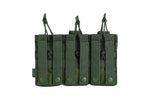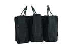 The NFG Strategic triple M4/9mm open-top Mag Pouch combines and secures three M4/M16 open top magazine with bungee straps and three 9mm magazine with adjustable velcro flaps. It’s engineered utilizing our 600 Denier PU*2 DWR coated Cordura which offers significant weight reduction. Since the entire pouch is adjustable, from the elastic pull-tab cords to the pistol mag flaps. This pouch is tough and tactical, with riveted holes at the bottom to allow for drainage. Mag placement is easy and retrieval is quick, as the tops of the pouch open rapidly for situations in which speed is paramount. Magazines sit securely in place, making this a reliable piece of duty gear.