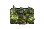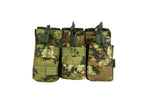 The NFG Strategic Triple Stacker open-top Mag Pouch is a convenient modular attachment that accommodates Six M4 or M16 magazines in a stacked configuration. This mag pouch attaches easily to battle belts, tactical vests and other webbing platforms thanks to six MOLLE straps on the rear. Featuring a rugged 600D PU*2 DWR coated construction designed to handle constant abuse, this pouch is ultra-durable. It’s also constructed with bungee pull-tab cords that ensure the magazines sit securely in place, making this pouch a safe option for your extra ammunition. These bungee cords also allow the tops of the pouch to open rapidly for easy magazine retrieval and replacement.